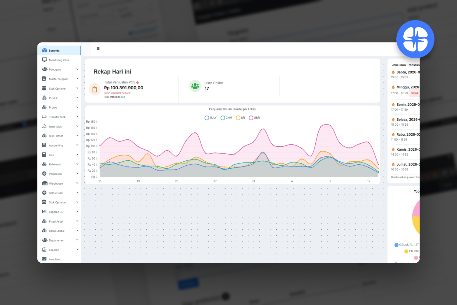SmartBiz is a modern ERP application that helps businesses manage operations, inventory, sales, and financial reports efficiently. It is currently used at Mutiara Super Kitchen, Bandung, to support stock management and daily operations.